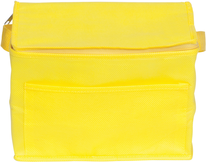 Budget 6 can cooler bag made from partly recycled REACH compliant* 80 gsm Non Woven Polypropylene with a front slip pocket, carry strap and insulated lining material. Food Safe certified.